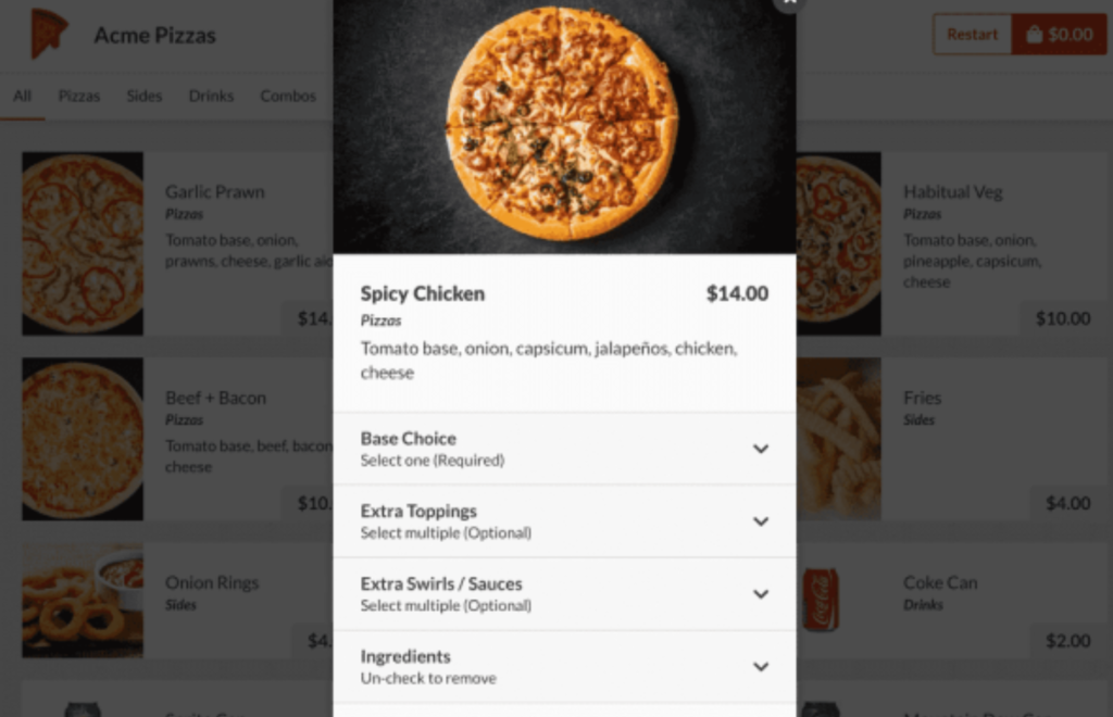 Our easy to use and powerful menu builder gives you the ability to build in-depth menus and dishes. No matter what your menu requirements may be, it can be achieved with our ordering software